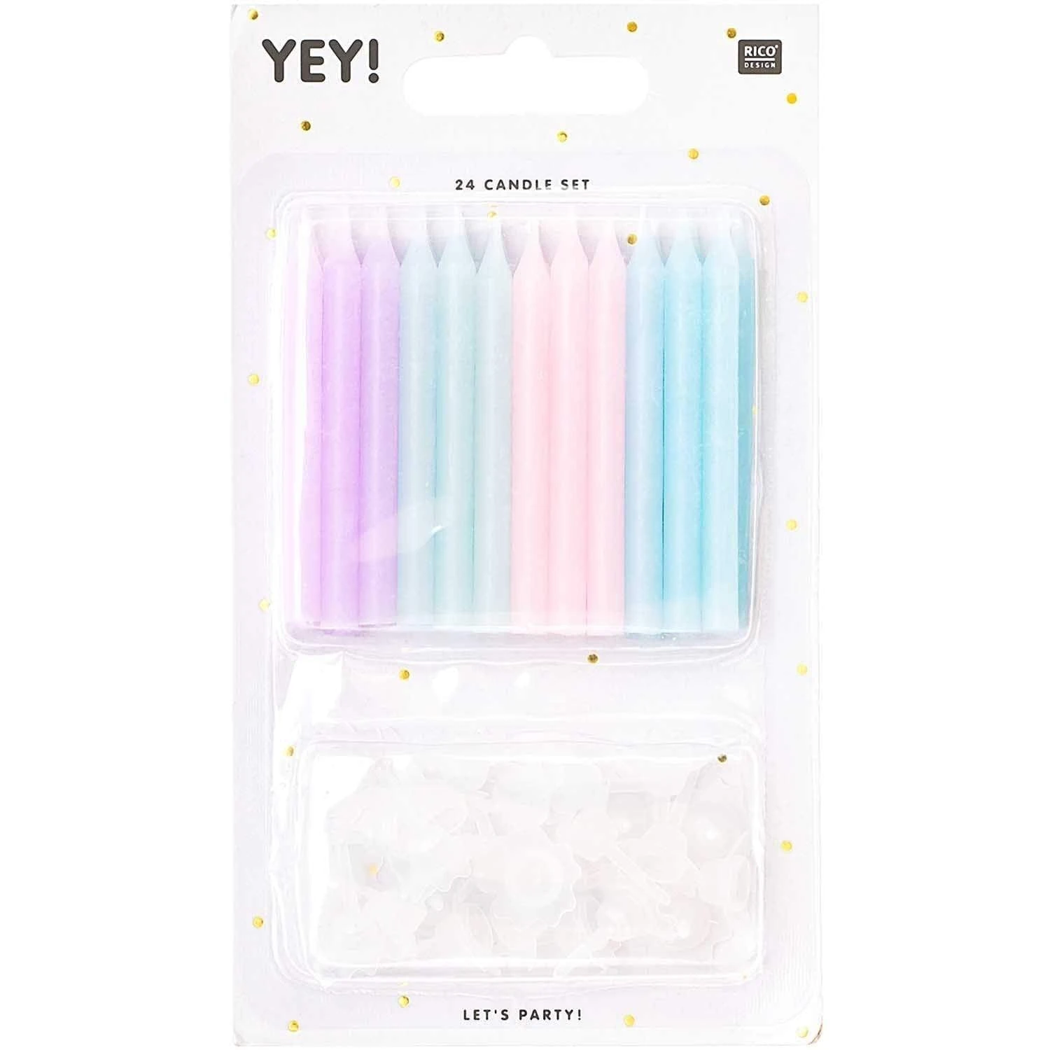 • Set of 24 candles and 24 transparent candle holders