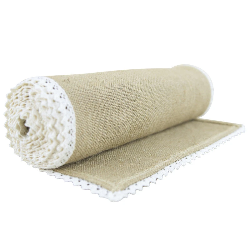 Jute table runner with a pretty cotton trim. Perfect for adding a natural but romantic look to weddings parties and events or just to use at home.