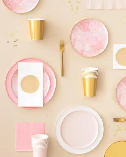 - Designed in San Francisco by Oh Happy Day these party plates are a collection of the most delightful pink shades.Â