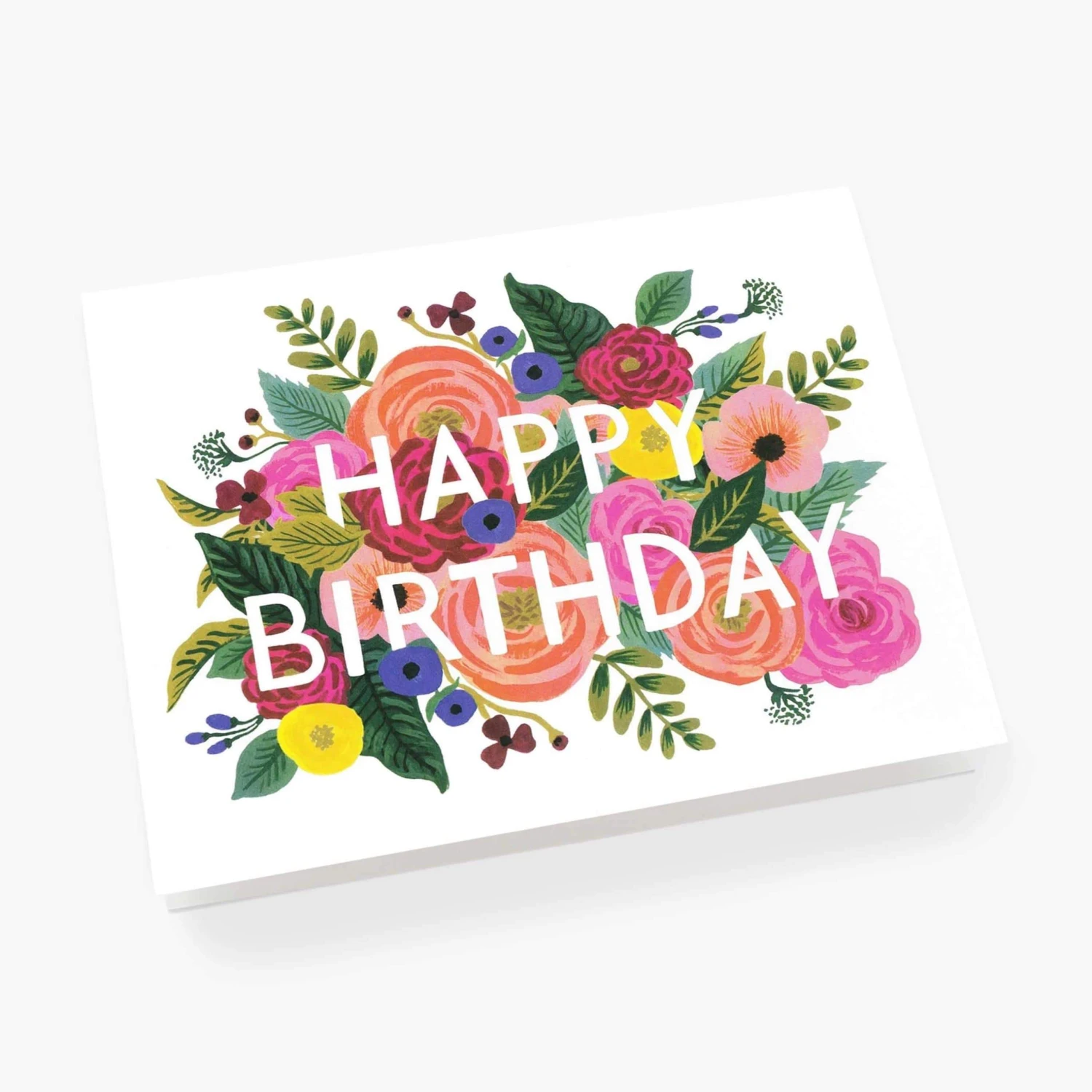 Rifle Paper Co Juliet Rose Card. This floral design is distinctively Rifle paper, taken from an original hand painted design in gouache by Anna bond. A blank interior lets your handwritten note take center stage.