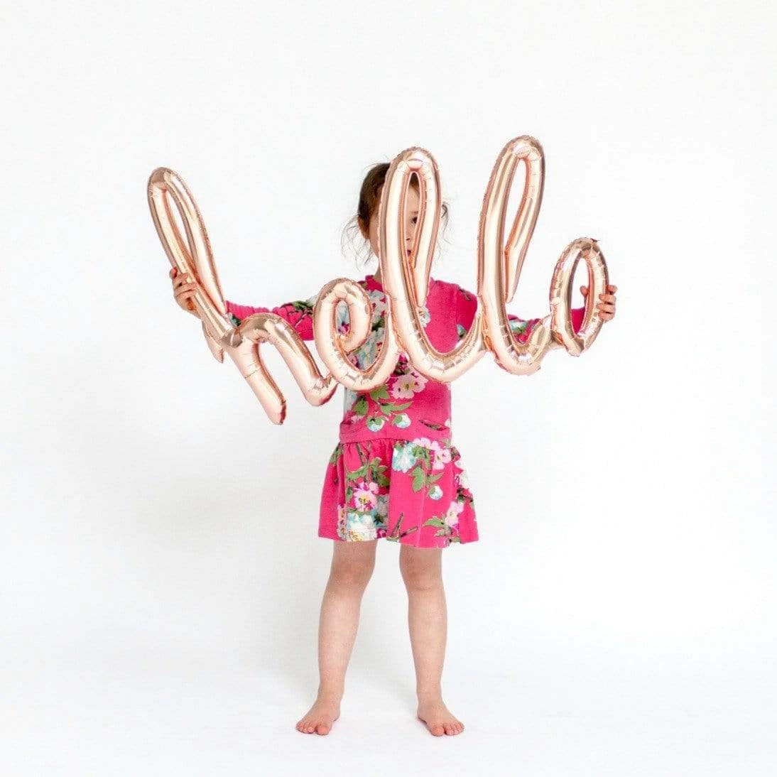 These beautiful rose gold Hello script balloons are great for happy occasions and weddings. At 31″ they are a perfect statement piece for large events. It is air-fill only due to its shape, and can be strung up with a nylon line or ribbon to make a banner. It includes a filling straw for easy inflation by mouth.