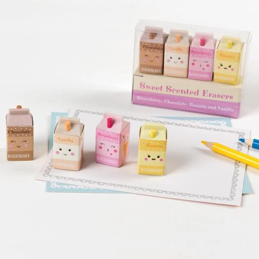 These adorable mini erasers smell as sweet as they look, with a range of classic milkshake scents in each pack.