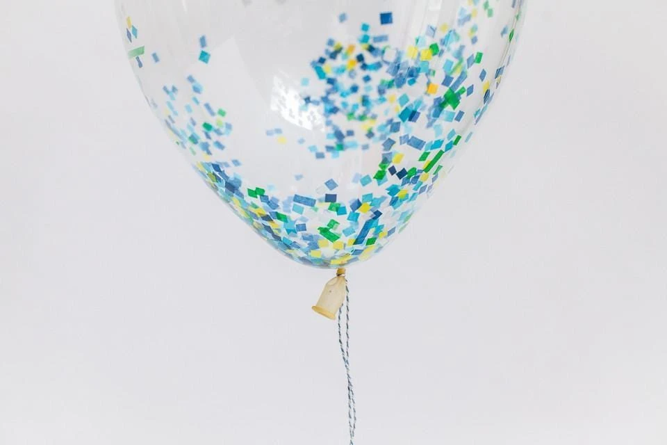 To make the confetti stick to the sides of the balloons best, we recommend inflating the balloons with a mixture of helium and adding good of puff of air!