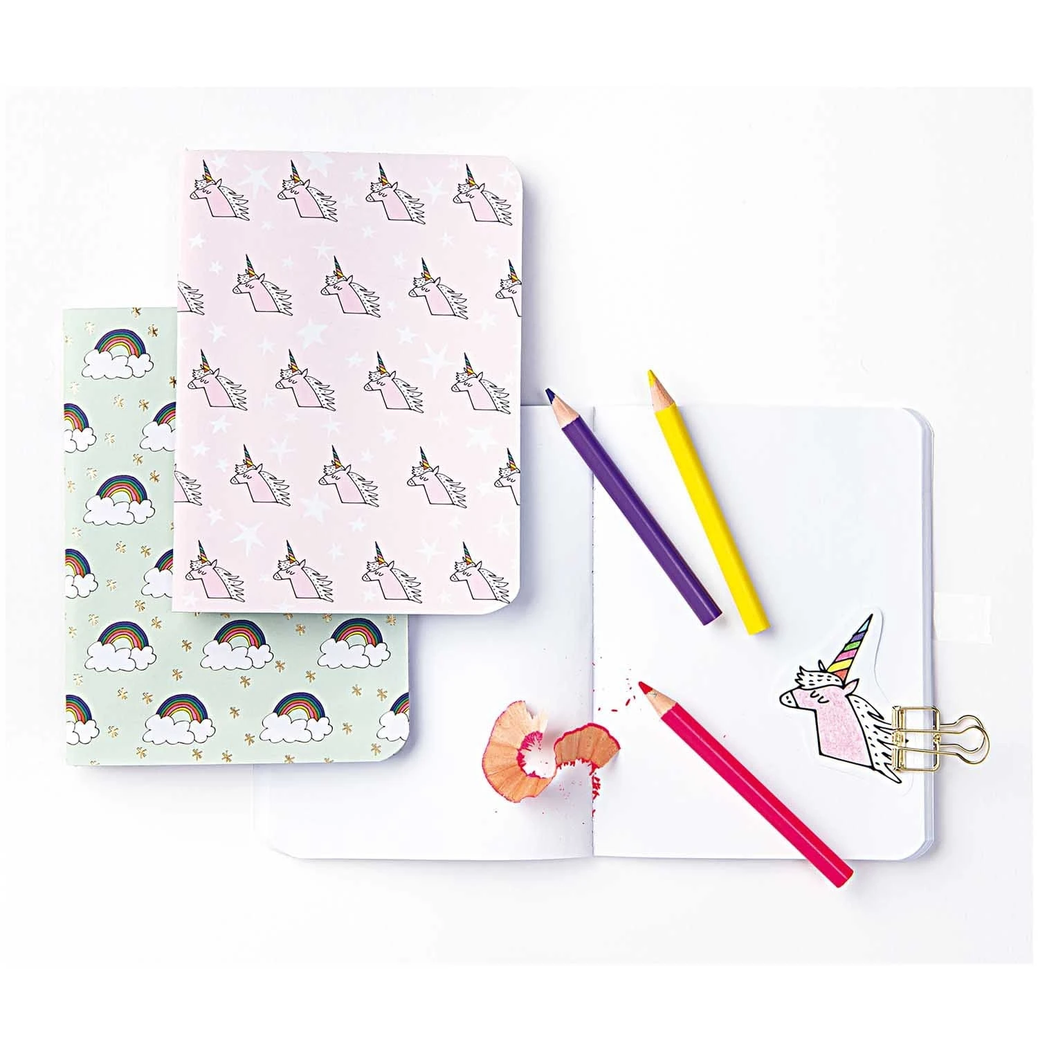 Three A6 sized notebooks in super-modern colorful designs: colorful rainbows, sweet unicorns and cool soft ice cream – the colorful, shrill and lively motifs immediately ensure a good mood!