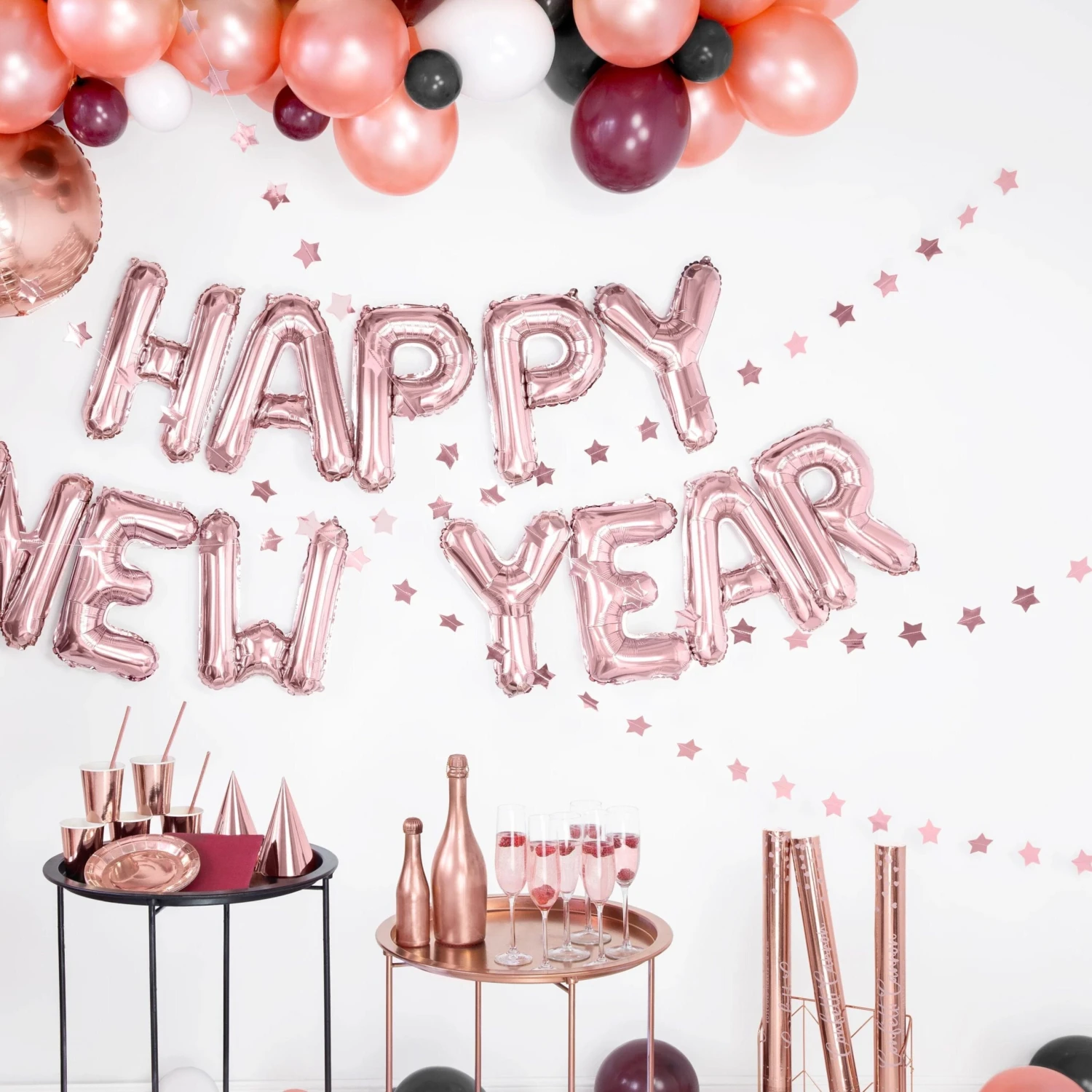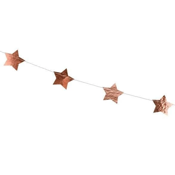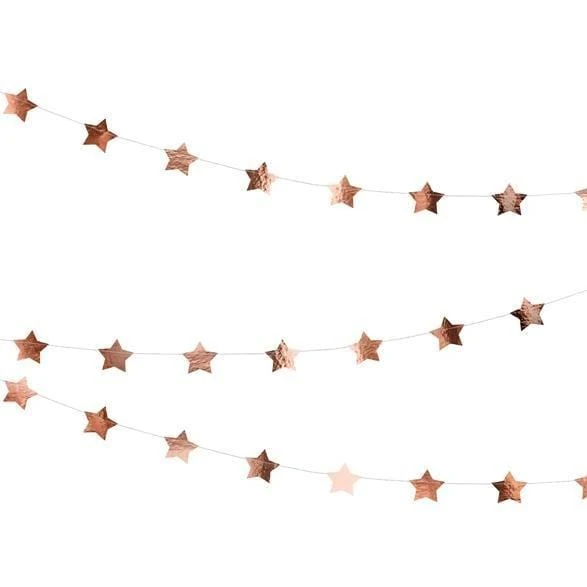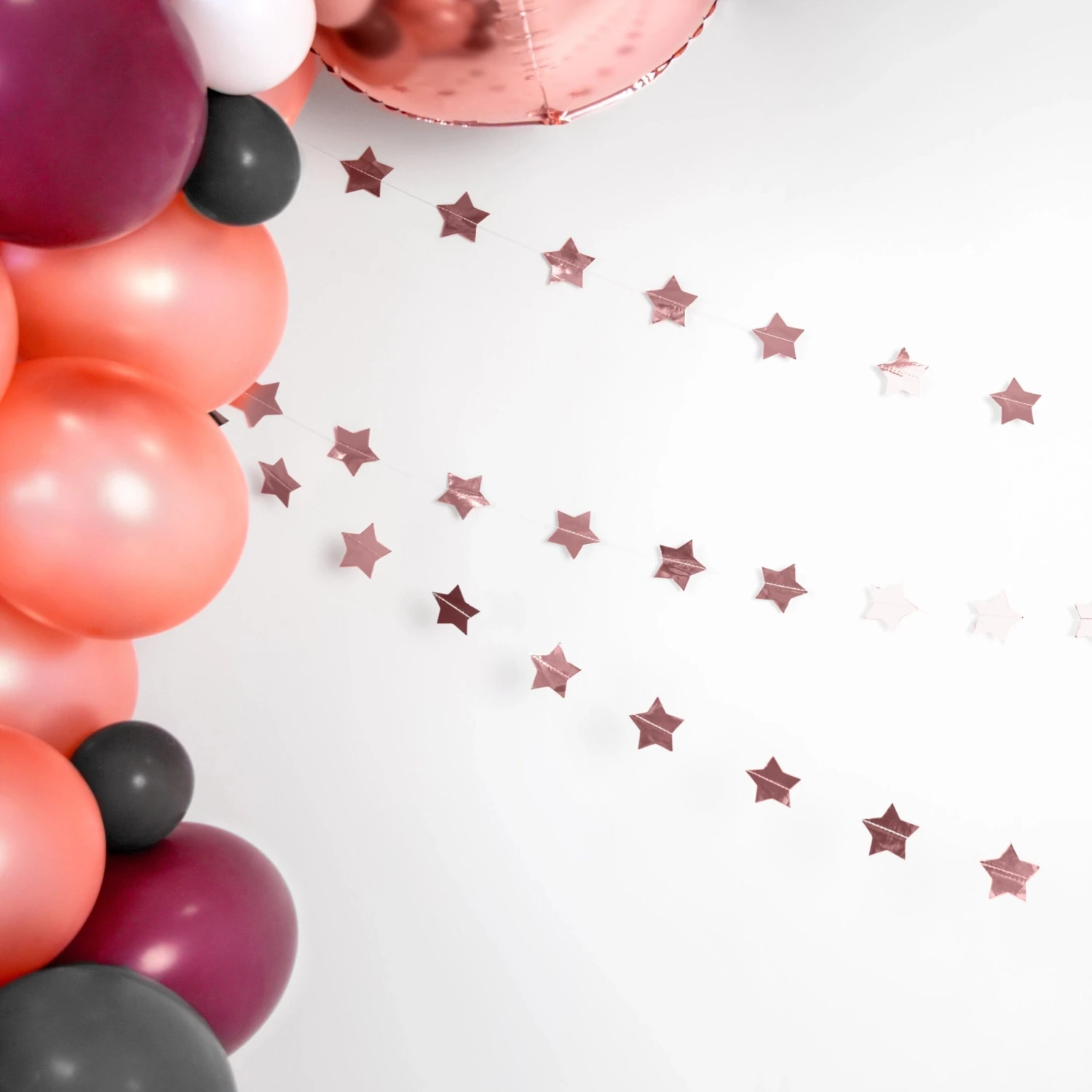 Add some modern glamour to your celebration with this rose gold star garland. These are also perfect to attach to balloons as balloon tail decoration.