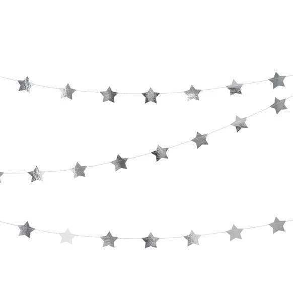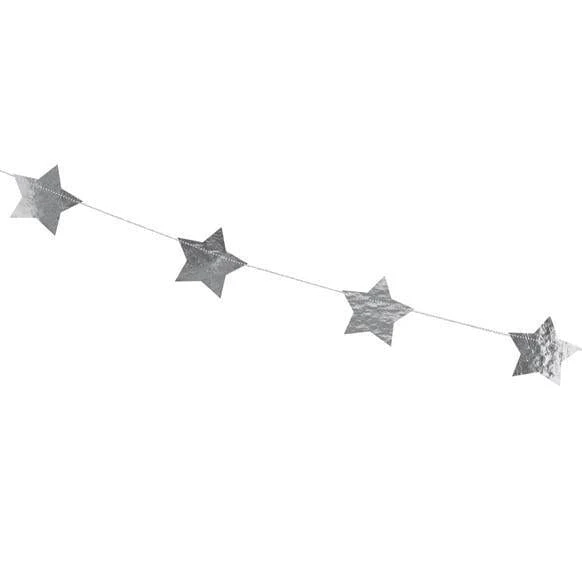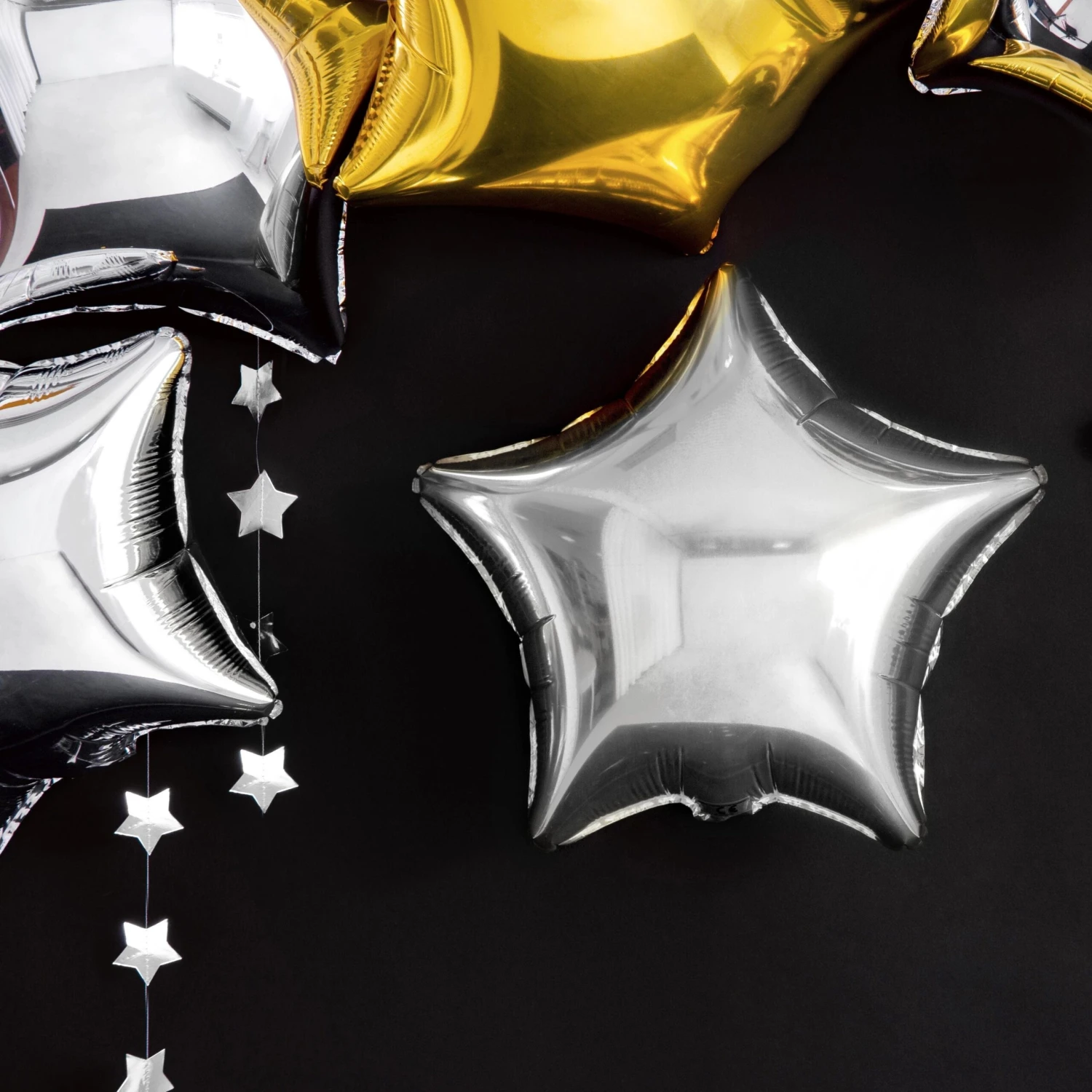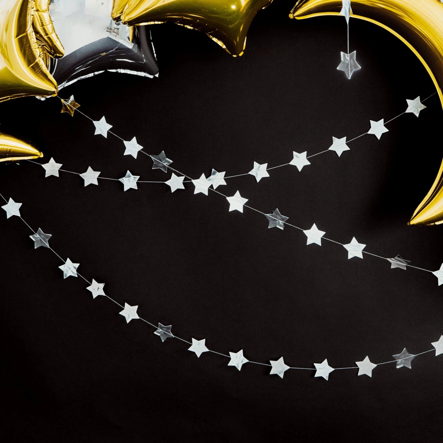 Add some modern glamour to your celebration with this silver star garland. These are also perfect to attach to balloons as balloon tail decoration.