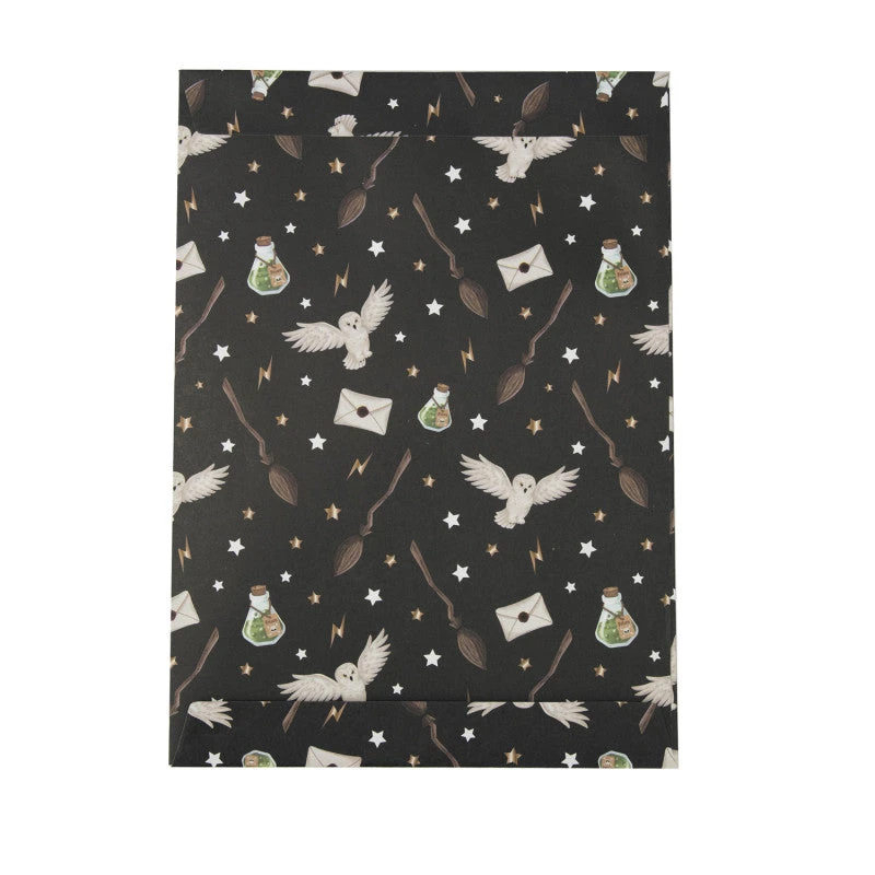 Cute paper treat bags decorated with Owl, potions and broomsticks; simply perfect for a Harry Potter themed party, magic party or for Halloween.