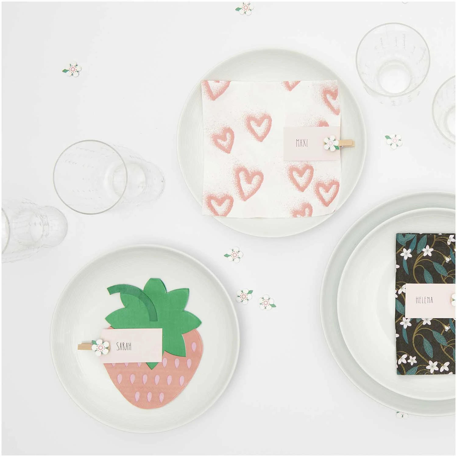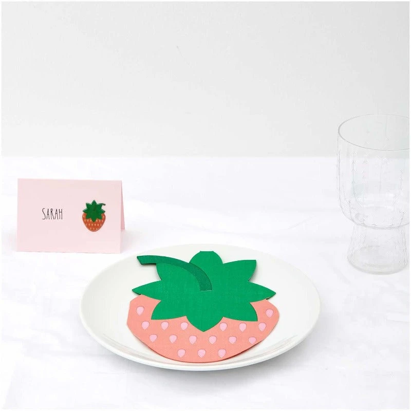 Sweet strawberry shaped paper napkins. Cute and colourful, they will brighten up any table. Cut in the shape of strawberries.