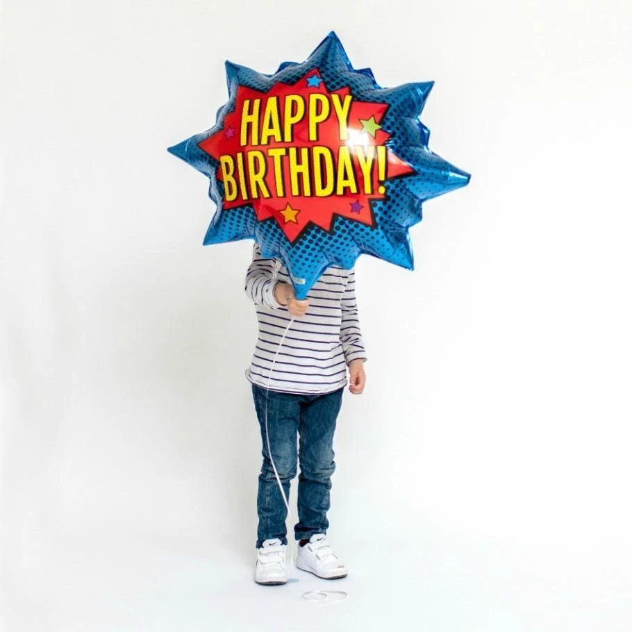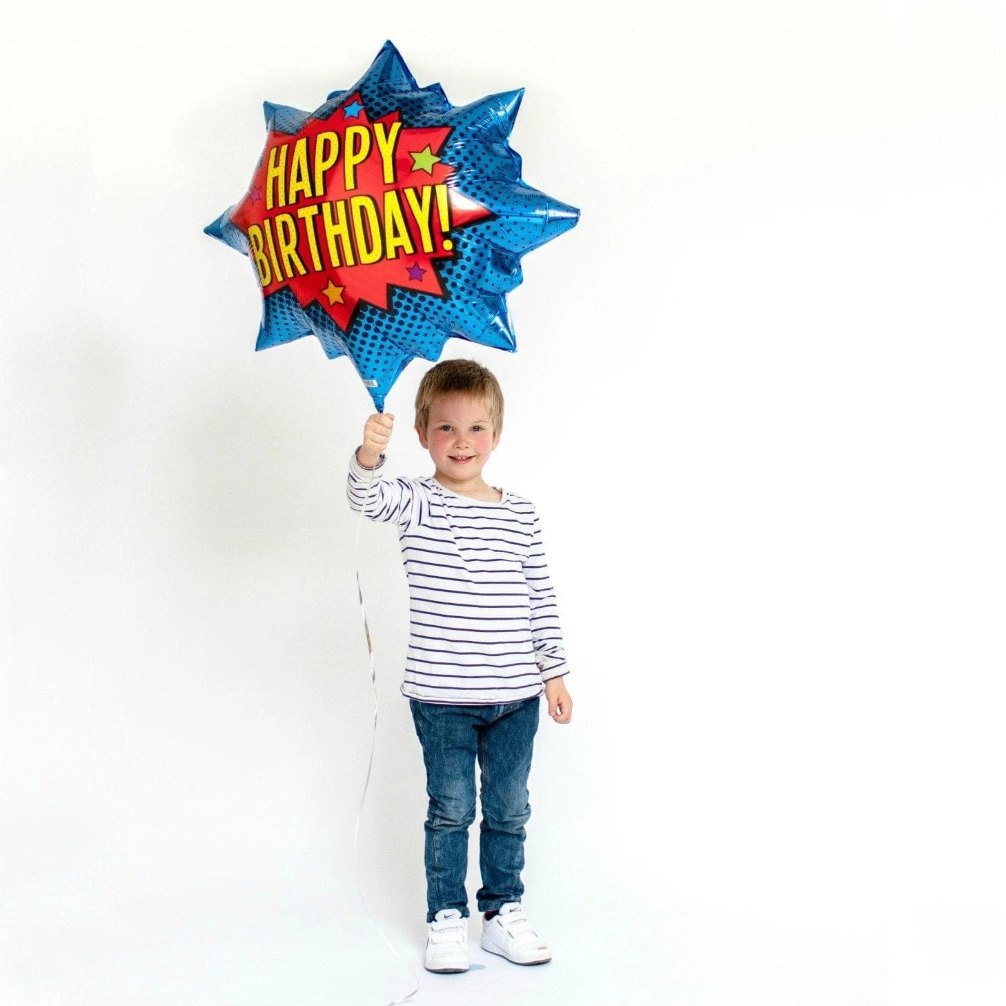 A birthday balloon for super heroes! Just perfect for a superhero themed birthday. Suitable to fill with helium.