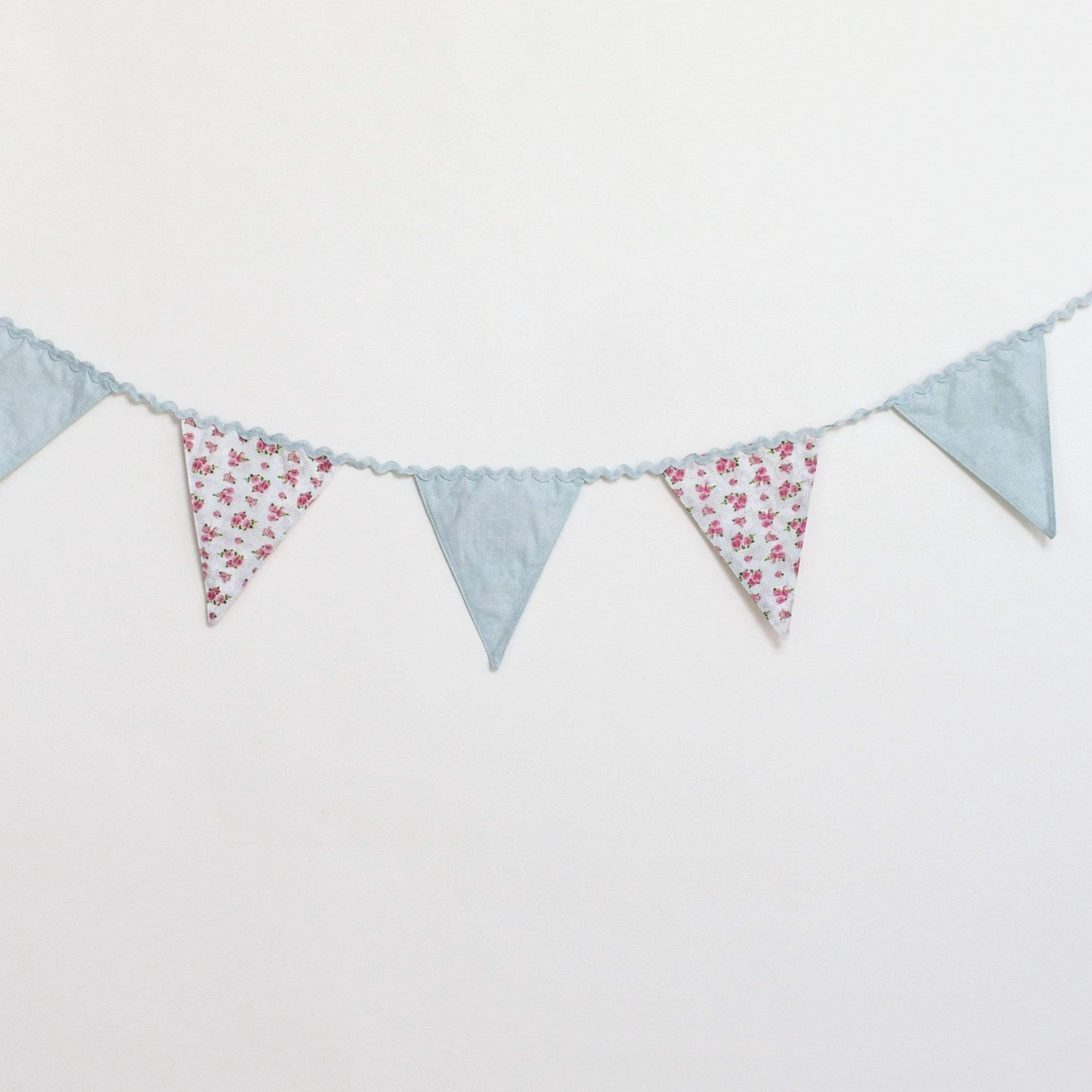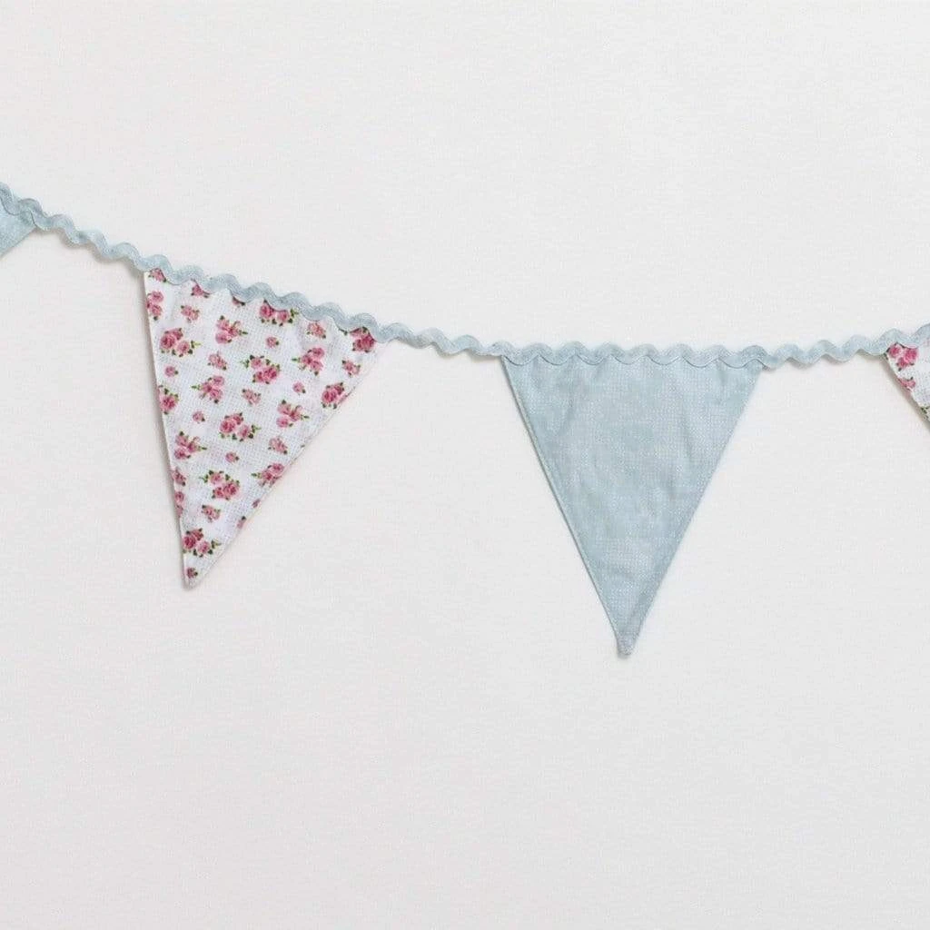Pretty Ditsy Fabric Bunting. This gorgeous floral bunting is beautifully made using pretty floral ditsy print and gingham fabric and ricrac ribbon. Perfect for a tea party or summer garden celebration.