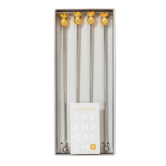 This pack of four pineapple drinks stirrers will add a little dash of sophistication to your soiree. Topped with a delicate gold pineapple, these metal stirrers will be the trendy accessory you’re missing for your cocktail!