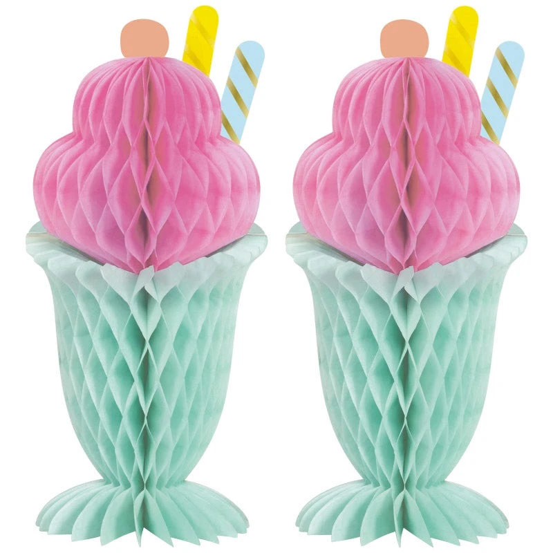 These honeycomb ice cream sundaes make wonderful table centrepieces. Cheerful and fun, fold away after use and reuse!