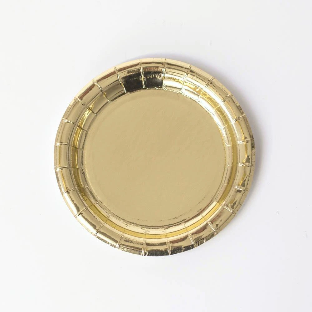 Shiny Gold Paper Plates. Designed to be mixed and matched with other plates, cups and napkins to style your party accordingly.
