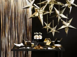 A party showstopper! These shimmering soft white gold tassels are a metallic door curtain that you can attach to a balloon with tape.