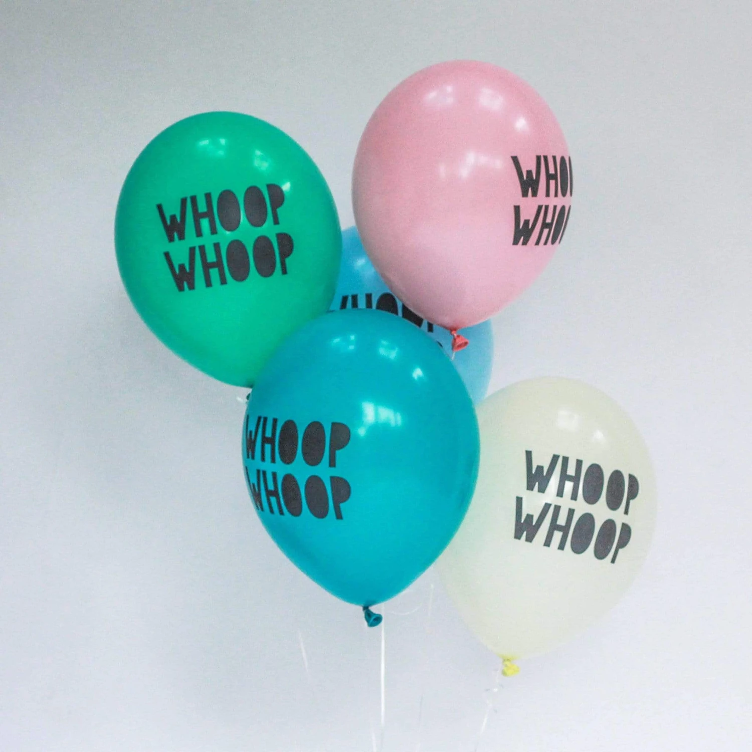 These fun ‘Whoop Whoop’ Balloons have been designed exclusively for Pretty Little Party Shop. These cool balloons are sure make your guests smile, perfect for celebrations and parties with these stylish and modern balloons.Â