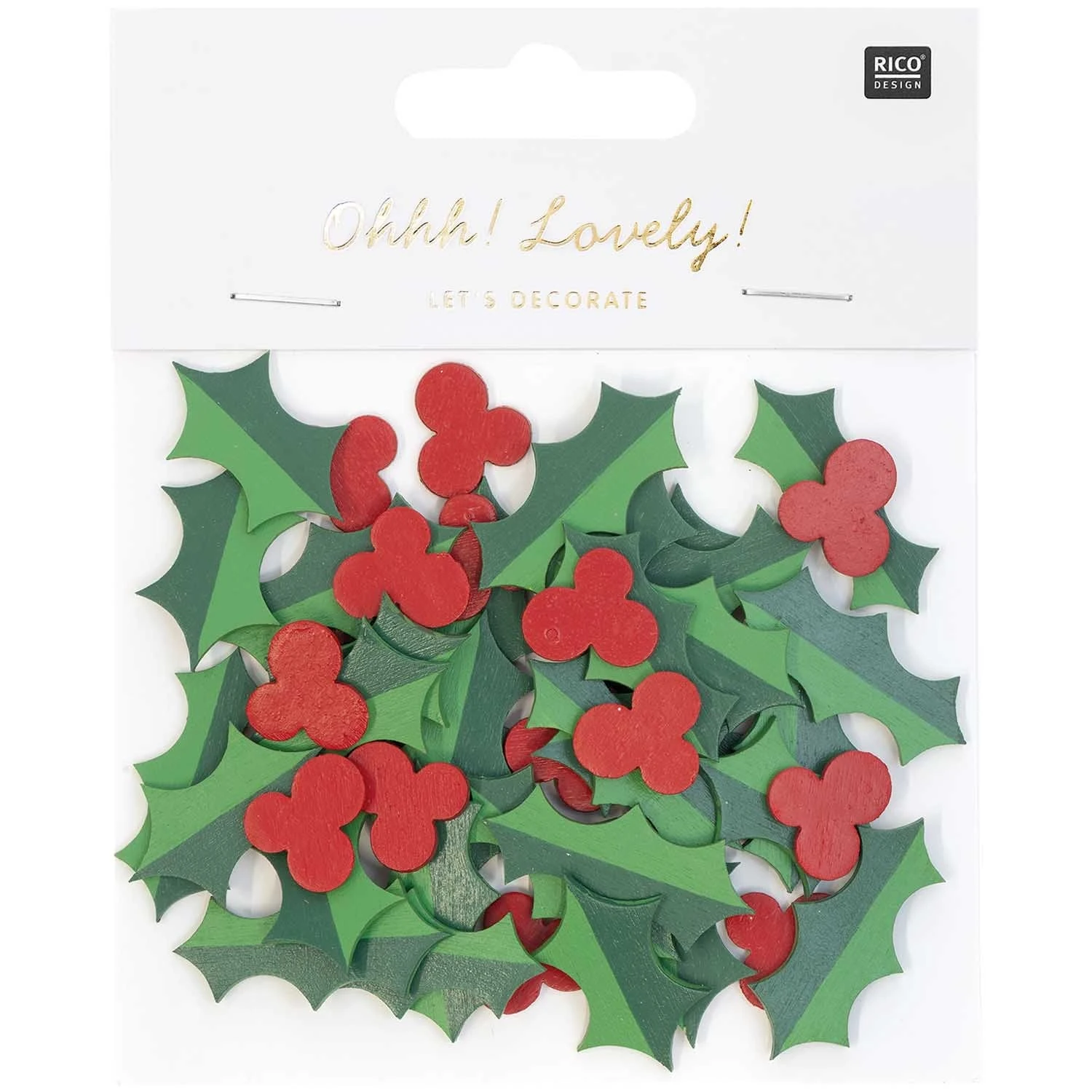 Gorgeous festive holly wooden confetti to delight your Christmas party guests! Scatter the wooden leaves and berries onto tables or use for party crafting, pop in a card, use as a cupcake topper, embellish a gift, or numerous crafting projects.