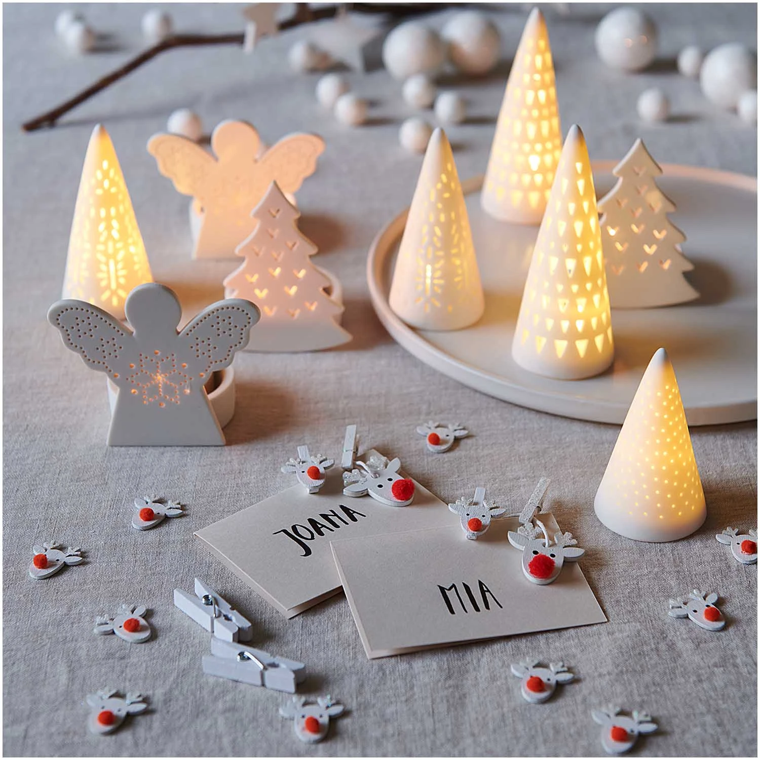 Every Christmas table needs this adorable reindeer confetti! Cute wooden reindeers with red pom pom noses. Scatter onto tables or use for party crafting, pop in a card, use as a cupcake topper, embellish a gift, or numerous crafting projects.